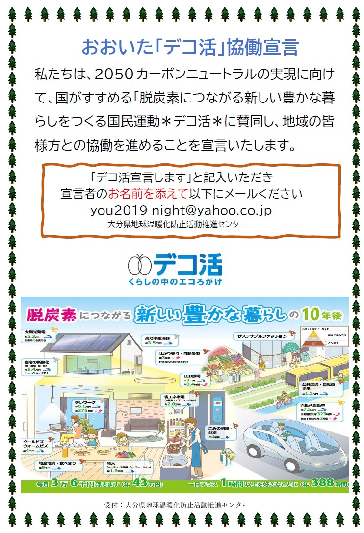 未分類 おおいた「デコ活」協働宣言 2025.12.10 Post Share Hatena Pocket RSS feedly Pin it この記事のタイトルとURLをコピーする おおいたデコ活宣言ダウンロード 大分県地球温暖化防止活動推進センターではデコ活協働宣言にご協力していただける方を募集しております。どしどしお申込みください。 Post Share Hatena Pocket RSS feedly Pin it おおいたエコドライブコンテストを開催いたします。 前の記事 エコドライブコンテストのQRコードはこちらです。 次の記事