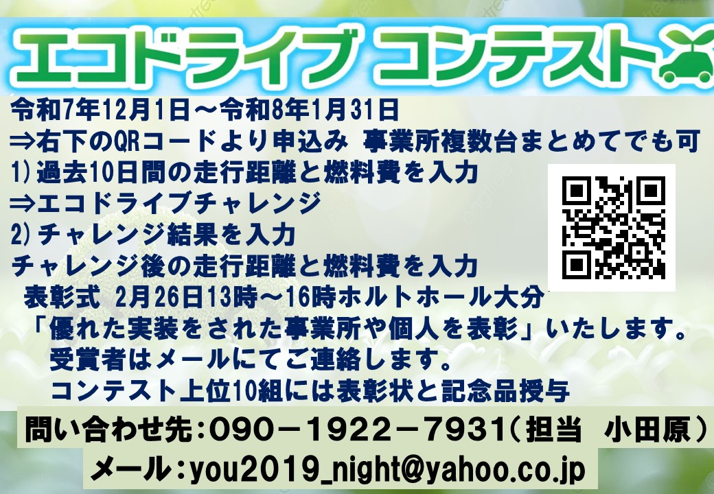 未分類 おおいたエコドライブコンテストを開催いたします。 2025.12.10 Post Share Hatena Pocket RSS feedly Pin it この記事のタイトルとURLをコピーする 12月は大分エコドライブ月間です。QRコードからもご参加可能ですので奮ってご参加ください。 おおいたエコドライブコンテスト2025 (2)ダウンロード 上のQRコードよりお申込みよろしくお願い致します。 おおいたエコドライブコンテスト2025 (2)ダウンロード QRエコドライブコンテスト2025 (2)ダウンロード 上記のQRコードから応募できます。 Post Share Hatena Pocket RSS feedly Pin it 第4回カーボンニュートラルカレッジ(修了式) 前の記事 おおいた「デコ活」協働宣言 次の記事